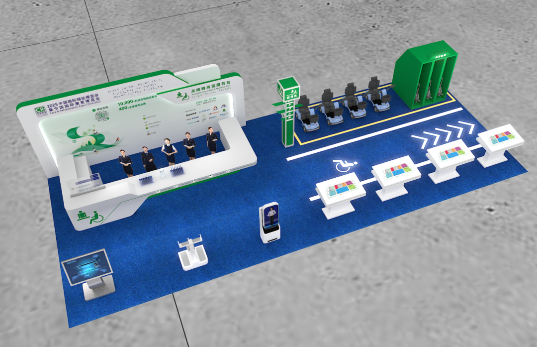 本屆博覽會所有展位配備無障礙坡道、低位接待臺,確保輪椅通行和互動空間。