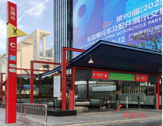 搭乘輪椅升降平臺,從經(jīng)過地下通道,再從琶洲站C出口。