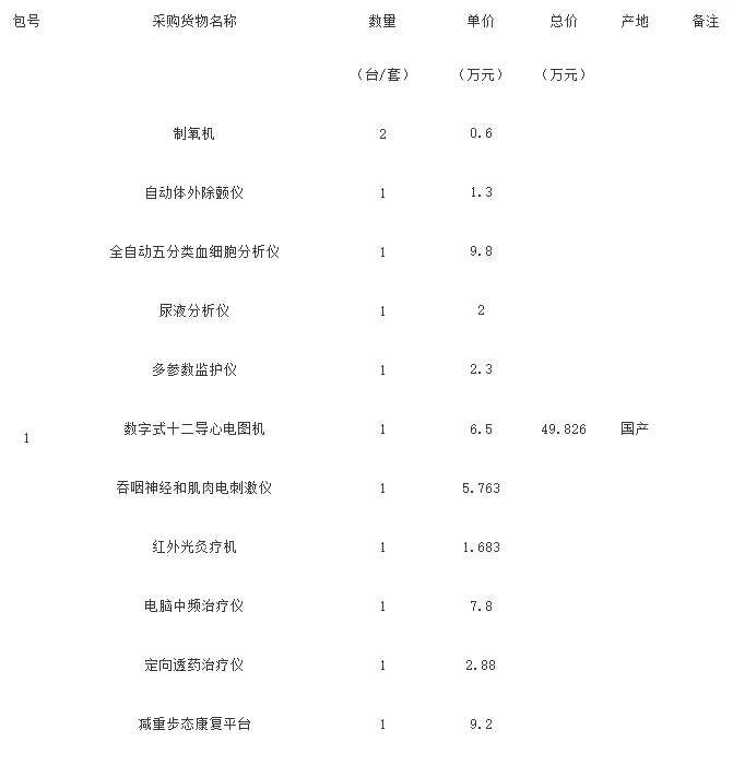采購需求:基層康復站康復設備采購(具體內容詳見第四章項目說明和采購需求)