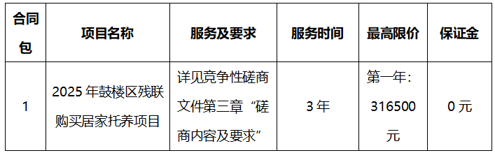 2025年鼓樓區(qū)殘聯(lián)購買居家托養(yǎng)項(xiàng)目競(jìng)爭(zhēng)性磋商