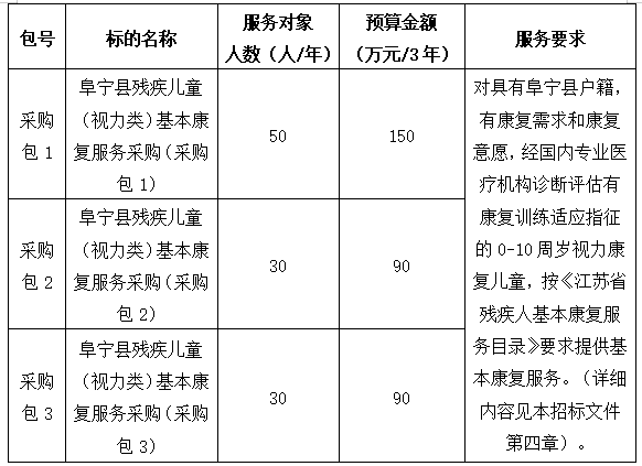 阜寧縣殘疾兒童(視力類)基本康復服務(wù)采購采購公告