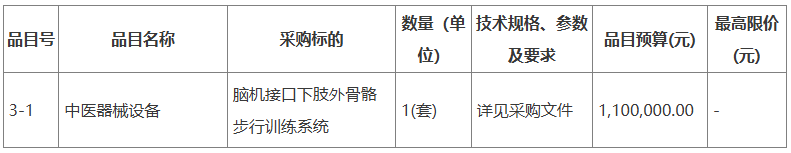 廣州醫(yī)科大學附屬中醫(yī)醫(yī)院天軌步態(tài)訓練系統(tǒng)、下肢康復機器人、認知語言康復訓練平臺、腦機接口下肢外骨骼步行訓練系統(tǒng)采購項目公開招標公告