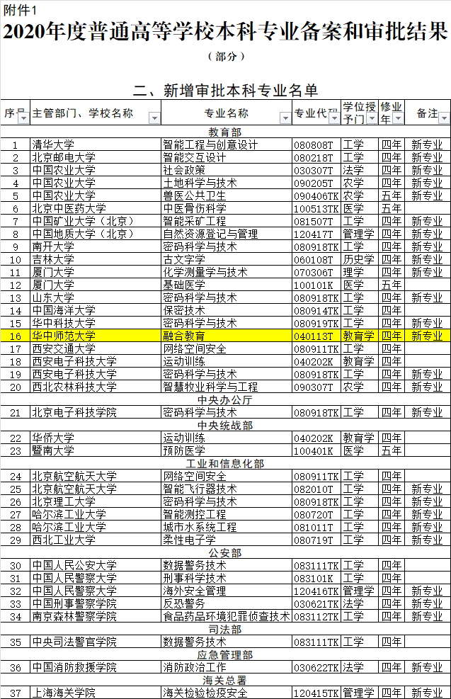 日前,根據(jù)《普通高等學(xué)校本科專業(yè)設(shè)置管理規(guī)定》(教高〔2012〕9號),教育部組織開展了2020年度普通高等學(xué)校本科專業(yè)設(shè)置和調(diào)整工作。經(jīng)申報、公示、審核等程序,對各地各高校向教育部申請備案的專業(yè)予以備案;在以上工作基礎(chǔ)上,根據(jù)高等學(xué)校專業(yè)設(shè)置與教學(xué)指導(dǎo)委員會評議結(jié)果,確定了同意設(shè)置的國家控制布點專業(yè)和尚未列入專業(yè)目錄的新專業(yè)名單。