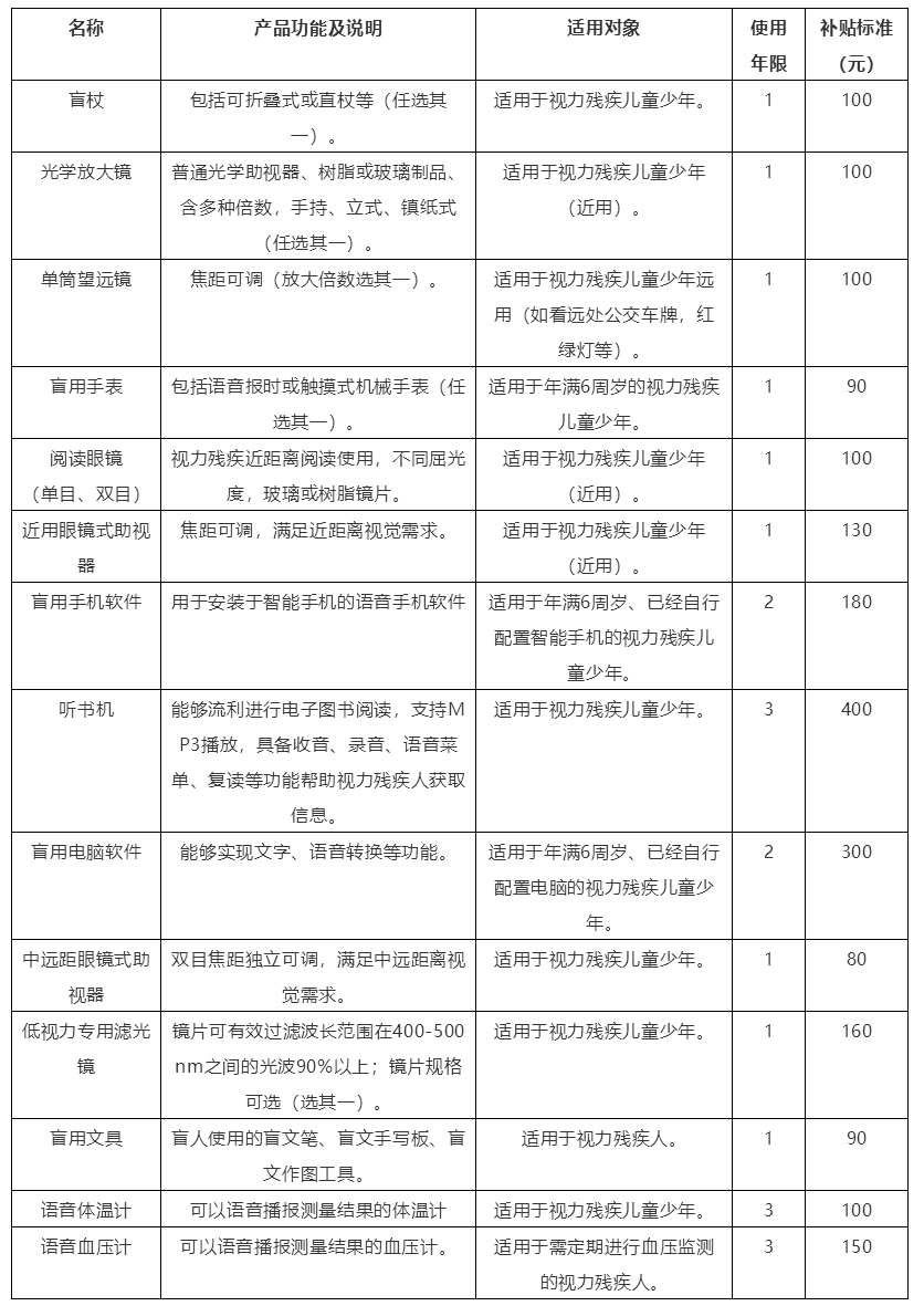 01 北京市殘疾兒童少年大額輔助器具購買補貼目錄(2021年版)