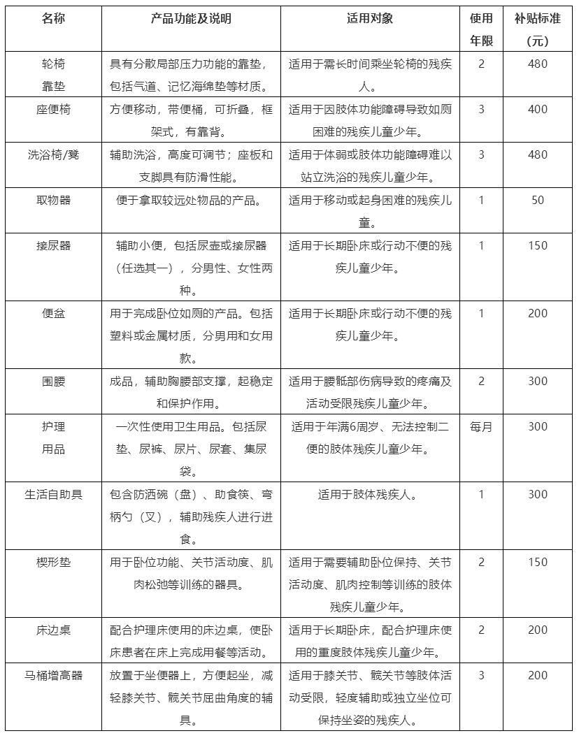 1.《北京市殘疾兒童少年大額輔助器具購買補貼目錄》(2021年版)
