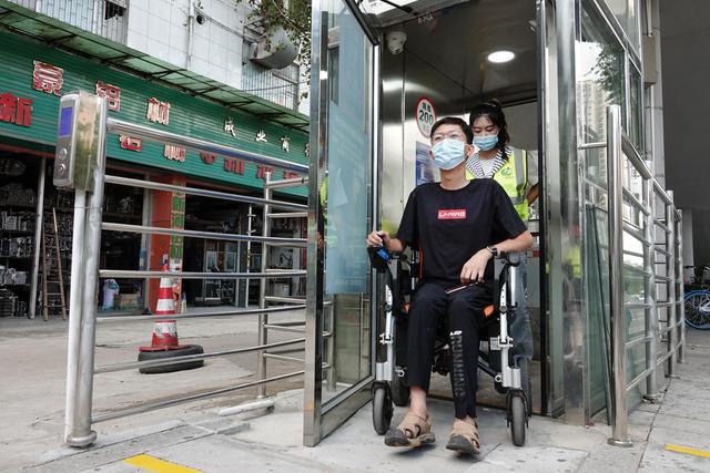 按下“呼叫鍵”,梯門緩緩打開,無障礙升降平臺將殘障人士小方送上過街天橋。“使用體驗很好!”作為無障礙電梯的第一位乘客,小方豎起大拇指,在試用意見表上填上了“滿意”。