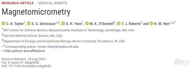 這項(xiàng)研究于 8 月 18 日發(fā)表在 Science 子刊 Science Robotics 上,論文名稱為 Magnetomicrometry。