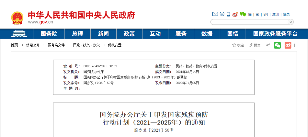 國務(wù)院辦公廳關(guān)于印發(fā)國家殘疾預(yù)防行動計劃(2021—2025年)的通知