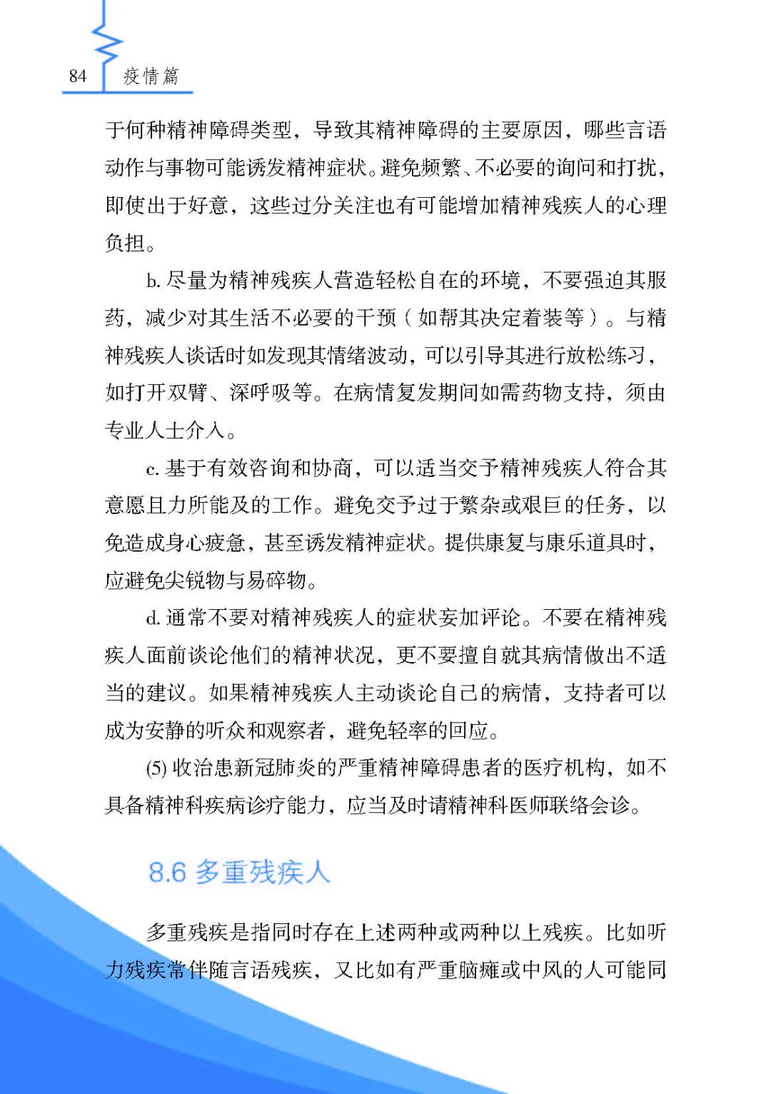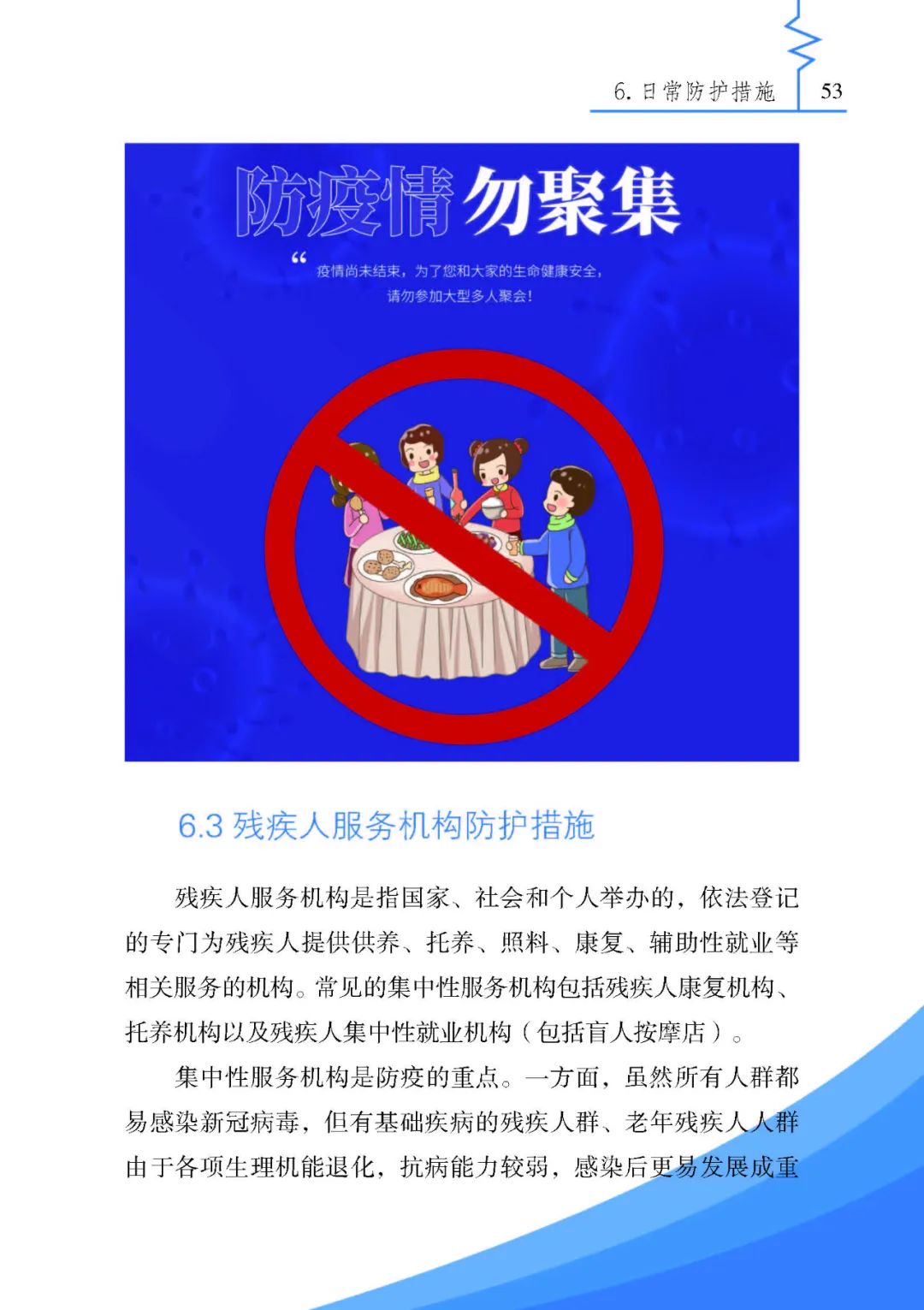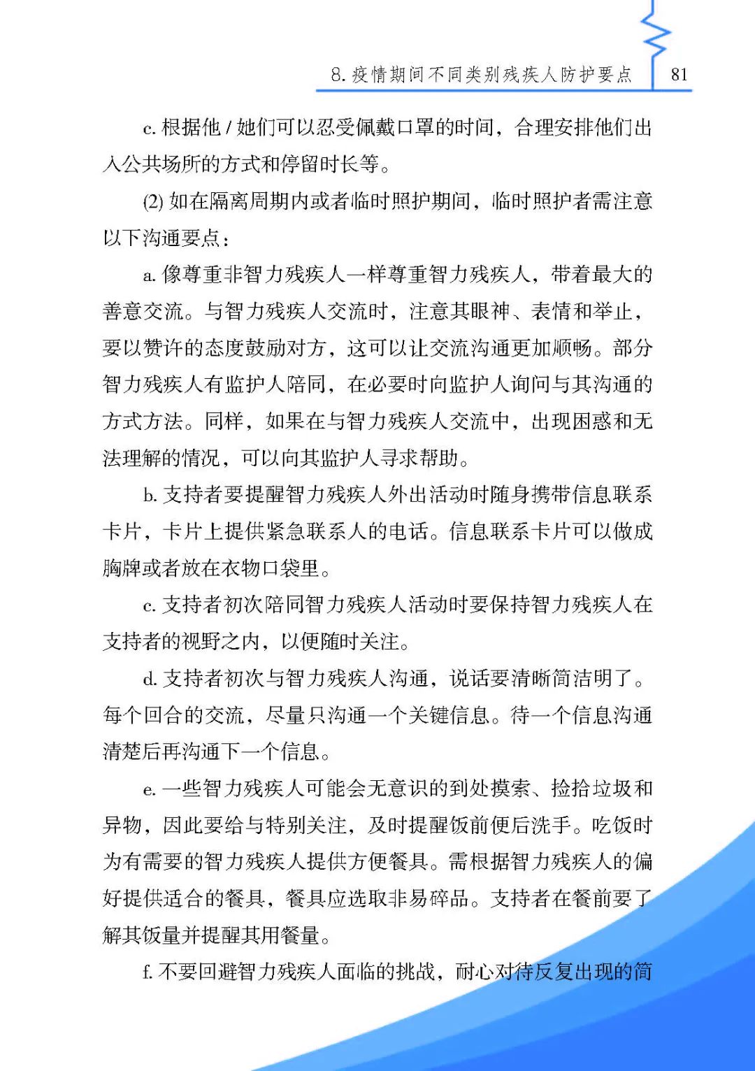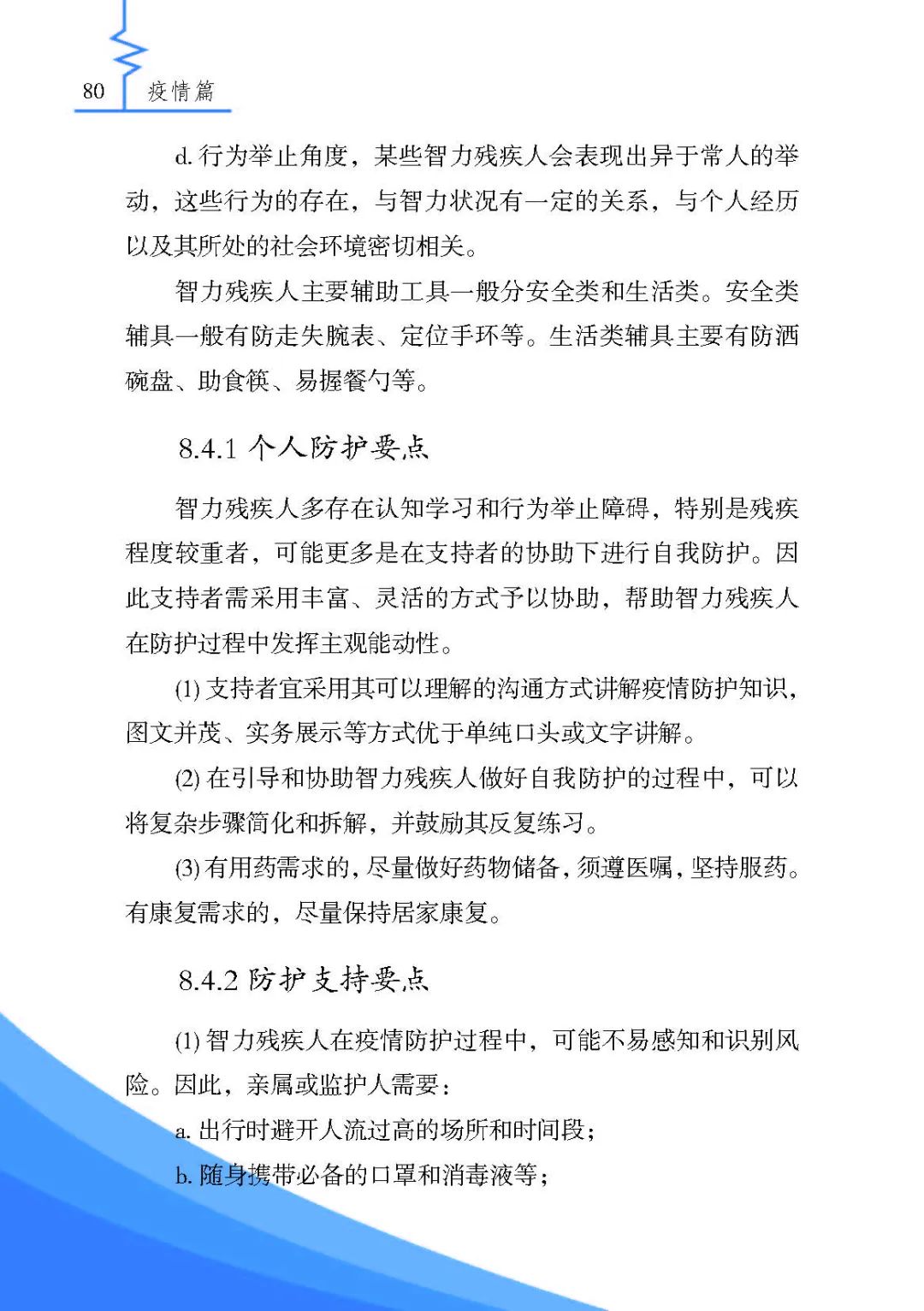 疫情給殘疾人帶來了身心健康、照護、經(jīng)濟等多方面的挑戰(zhàn),日常生活中,殘疾人應(yīng)如何做好防護呢?為做好殘疾人群體疫情防控工作,幫助殘疾人朋友科學(xué)防疫,當(dāng)好自己健康的第一責(zé)任人,中國殘疾人聯(lián)合會組織編寫了《殘疾人安全防護實用手冊·疫情篇》。