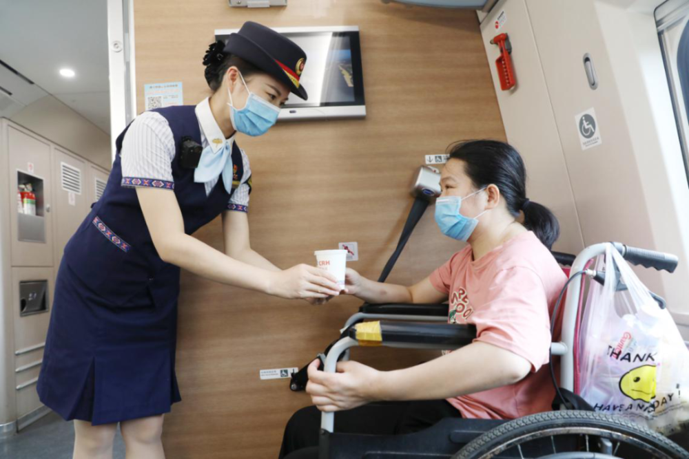 列車上為重點(diǎn)旅客提供專屬愛(ài)心服務(wù)。如遇其他問(wèn)題,請(qǐng)隨時(shí)呼叫列車上的工作人員,他們會(huì)為有需要的旅客提供問(wèn)詢解答、廣播尋醫(yī)、預(yù)約接站等貼心服務(wù),讓旅客出行更加美好。