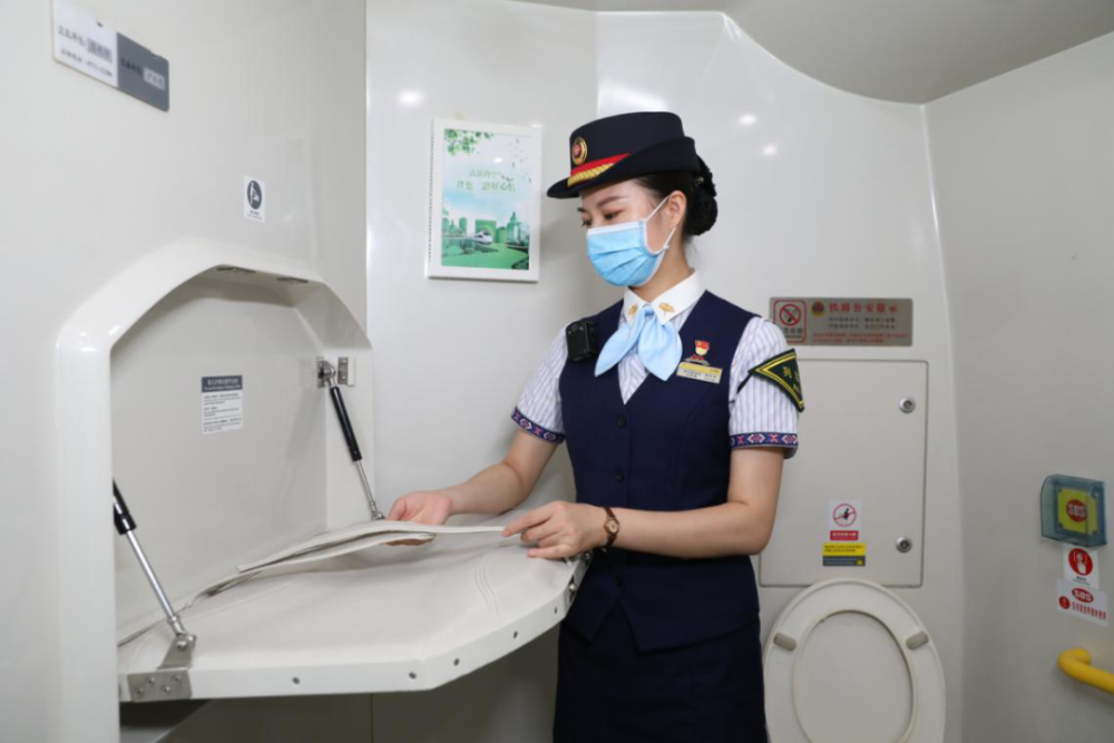 高鐵列車上設(shè)有無(wú)障礙衛(wèi)生間。配備安全扶手、SOS報(bào)警器等無(wú)障礙設(shè)施和母嬰護(hù)理臺(tái),為重點(diǎn)旅客提供旅途便利。