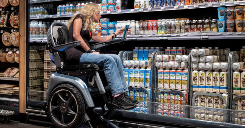 這個(gè)高度可以讓乘坐者的視線與正常行人的視線齊平,這樣不但能有效避免用戶產(chǎn)生被輕視的感覺(jué),也讓其與站立著的人溝通更加自然順暢,當(dāng)然在超市買東西時(shí),更高的座椅高度也方便坐在上面人拿取處于更高貨架上的物品。