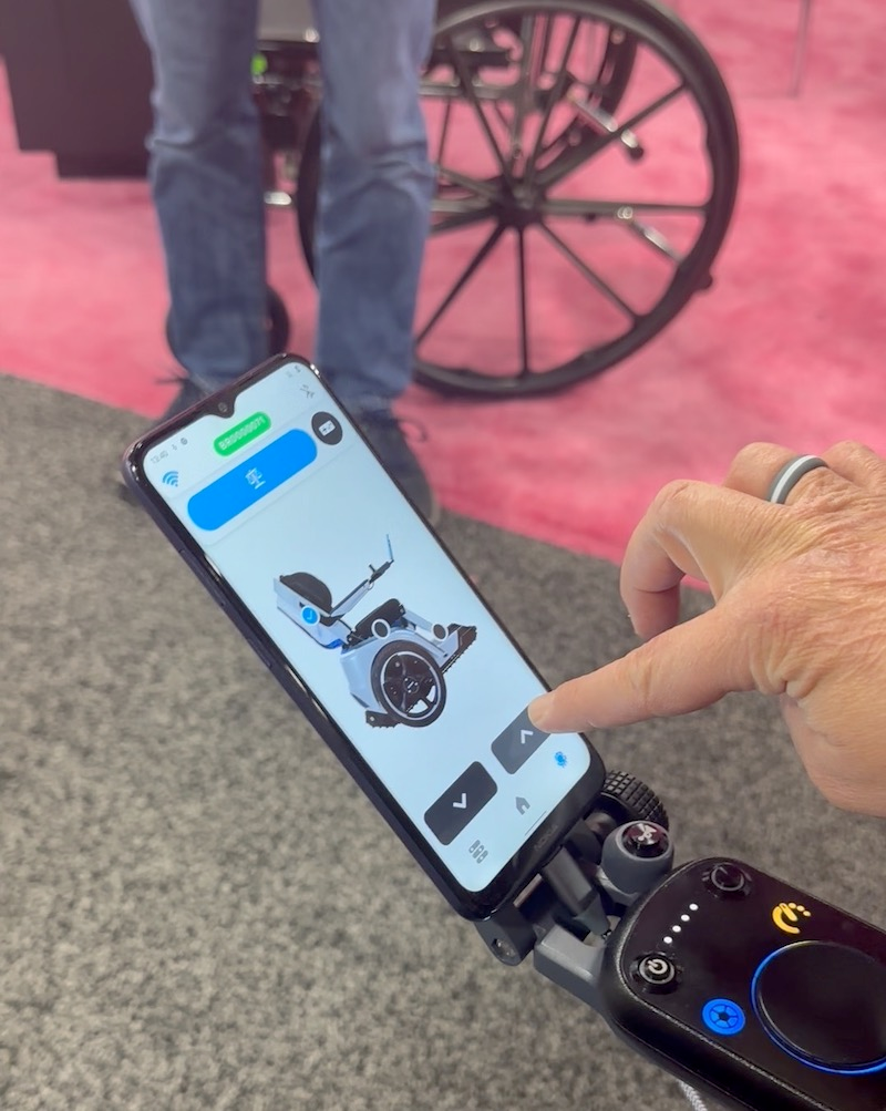 而且它的所有操作程序都在主頁(yè)面上設(shè)置得簡(jiǎn)單明了,只需要把手機(jī)安裝在專屬手機(jī)支架上,并打開(kāi)專屬APP,用戶就可以直觀地了解輪椅速度和當(dāng)前模式等基本信息。
