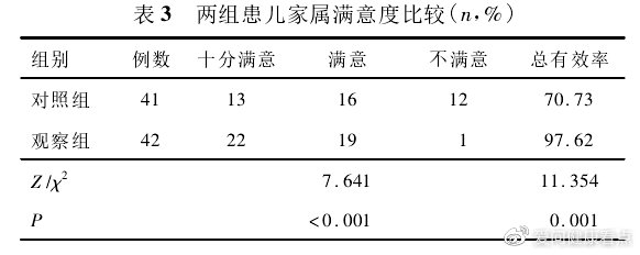 如上圖所示,家屬滿意度方面,觀察組為97.62%,顯著高于對照組的70.73%。