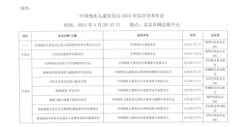 附件:中國殘疾人康復(fù)協(xié)會2023年綜合學(xué)術(shù)年會論壇安排明細(xì)表