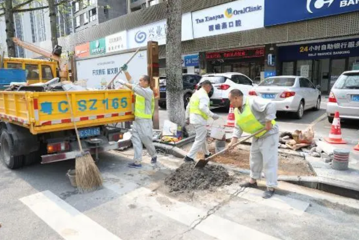 近日,珠海香洲區(qū)山場(chǎng)路一處斑馬線的人行道口,幾名市政工人在城管部門的協(xié)調(diào)下,正在進(jìn)行無障礙化改造施工,以方便特殊人群過馬路。
