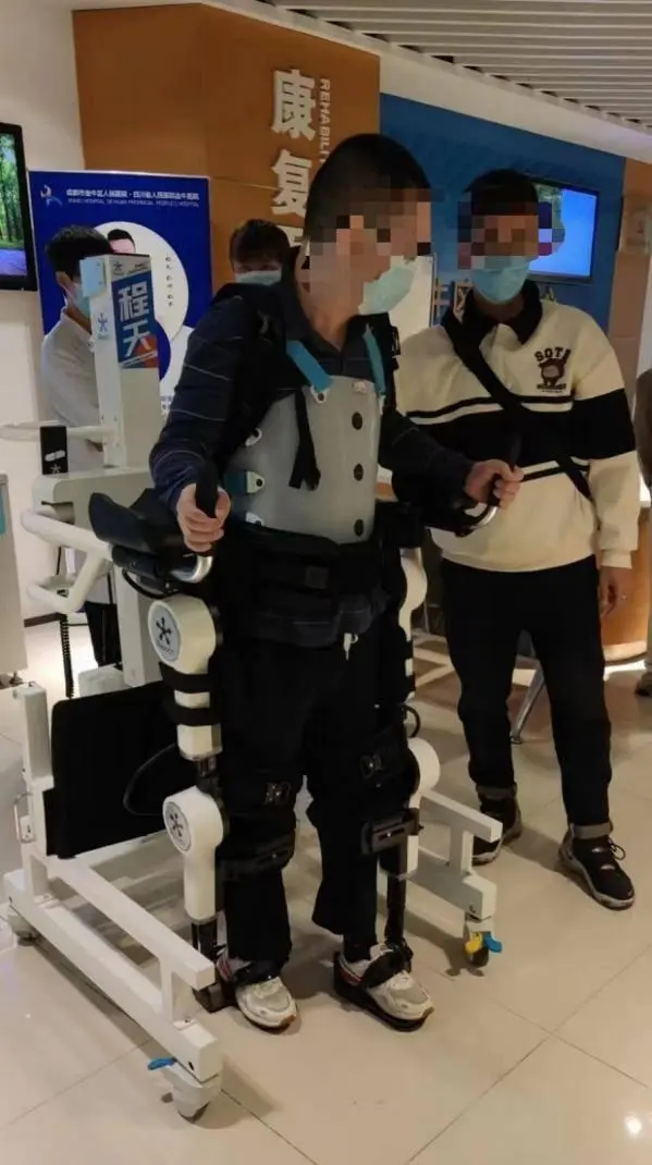??????? 就在小康入院半個(gè)月后,因?yàn)獒t(yī)院引進(jìn)的外骨骼機(jī)器人,康復(fù)信心逐漸恢復(fù)。作為首批使用機(jī)器人的康復(fù)患者,小康每天會(huì)在它的協(xié)助下完成量身定制的步態(tài)行走訓(xùn)練,經(jīng)過一個(gè)多月的堅(jiān)持,小康實(shí)現(xiàn)了拿著助行架獨(dú)立行走。