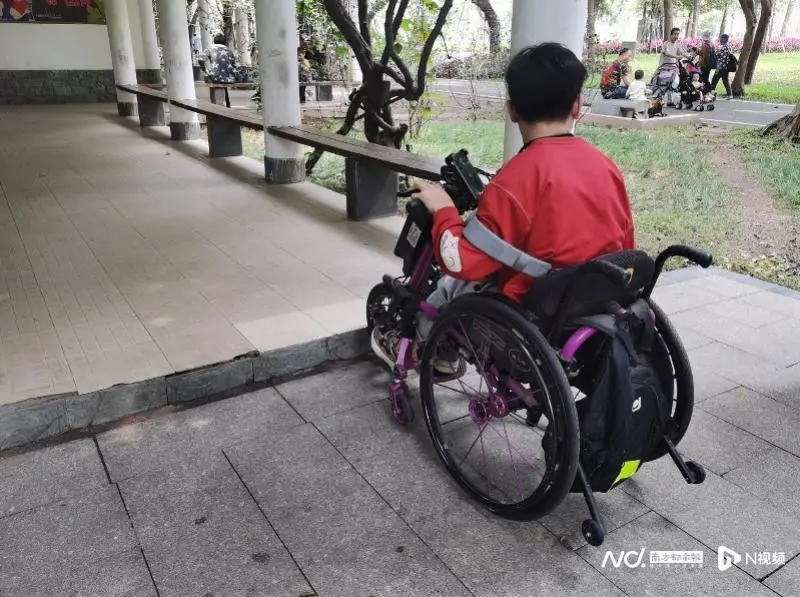 而在天河公園走訪時(shí),殘障市民馮先生能夠順利駕駛輪椅從主干道進(jìn)入一處名為“粵秀園”的景點(diǎn),但走了沒(méi)多遠(yuǎn),一個(gè)高約5厘米的臺(tái)階令他無(wú)法再前進(jìn)。