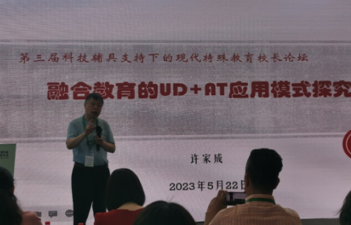 融合教育作為一種新的教育模式,正在逐漸成為特殊教育發(fā)展的趨勢(shì),通過跨學(xué)科融合、技術(shù)融合、文化融合和實(shí)踐融合等方式,更好地滿足學(xué)生多元化的教育需求,本屆論壇聚焦“融合教育背景下的UDL+AT的應(yīng)用”,邀請(qǐng)國內(nèi)該領(lǐng)域開展研究與探索的校長們分享融合教育成果與經(jīng)驗(yàn),共同探討更加美好的發(fā)展前景。許家成教授首先進(jìn)行了“通用設(shè)計(jì)學(xué)習(xí)與科技輔具在融合教育中的應(yīng)用”的主旨報(bào)告,他指出,在實(shí)際教學(xué)中,通用學(xué)習(xí)設(shè)計(jì)能夠充分體現(xiàn)關(guān)注個(gè)體、惠及全體學(xué)生的教育理念,輔助技術(shù)則讓特殊兒童教育成為可能,使教學(xué)更為有效。為此,需要推進(jìn)IESP引領(lǐng)下的UD&AT支持模式的實(shí)際運(yùn)用,并提出科技輔具支持下的現(xiàn)代特殊教育是教育質(zhì)量提升的有效途徑之一。