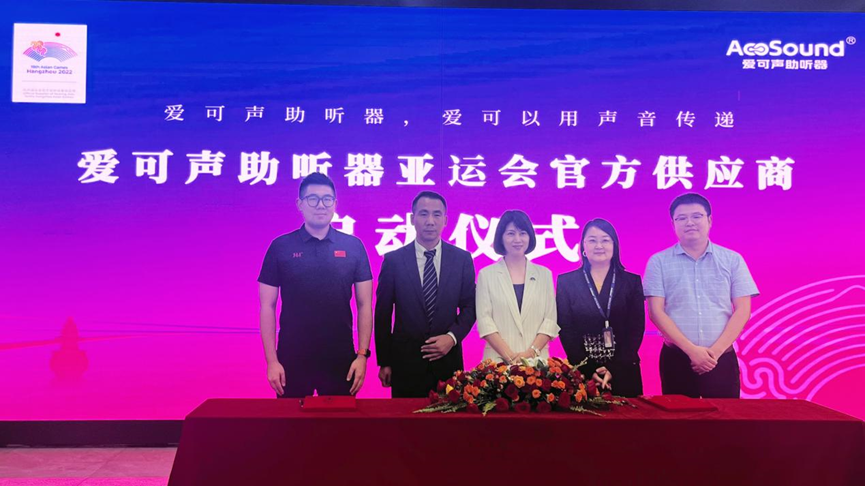儀式進行,葉副部長和李總移動臺前簽字啟動。愛可聲助聽器正式成為杭州亞運會官方助聽設(shè)備供應(yīng)商代表著愛可聲助聽器進入品牌升級的下一個重大里程碑。這不僅是杭州亞組委對愛可聲助聽器的信任,更是國內(nèi)外聽力行業(yè)市場對愛可聲助聽器的激勵與認可,充分體現(xiàn)出國產(chǎn)助聽器品牌愛可聲深耕醫(yī)療賽道多年的影響力!