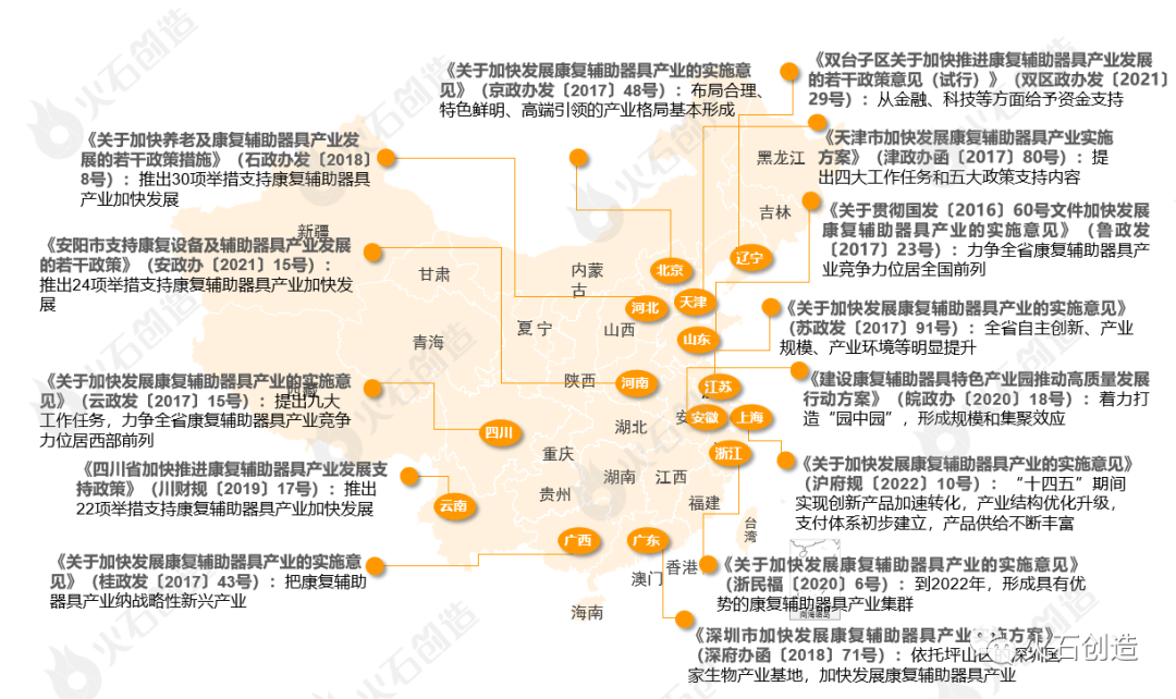 二是上級政府充分賦能。在貫徹落實《國務(wù)院關(guān)于加快發(fā)展康復(fù)輔助器具產(chǎn)業(yè)的若干意見》的基礎(chǔ)上,上海、成都、北京等地相繼出臺市級層面的產(chǎn)業(yè)規(guī)劃和具體實施措施,從頂層設(shè)計方面為產(chǎn)業(yè)賦能,在稅收、金融服務(wù)、財政資金引導(dǎo)等方面給予企業(yè)政策支持和保障。