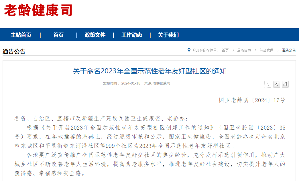 2023年全國示范性老年友好型社區(qū)名單公布