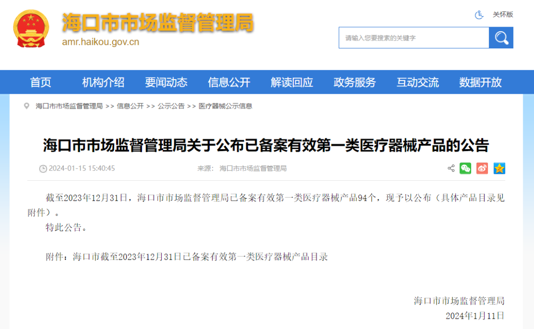 近日,??谑惺袌?chǎng)監(jiān)督管理局發(fā)布公告,公布已備案有效第一類(lèi)醫(yī)療器械產(chǎn)品名單。截至2023年12月31日,??谑惺袌?chǎng)監(jiān)督管理局已備案有效第一類(lèi)醫(yī)療器械產(chǎn)品94個(gè)。其中,海南殘疾人假肢矯形康復(fù)中心有限公司的足托、腰椎、膝關(guān)節(jié)、頸椎臂外展等固定器在名單內(nèi)。