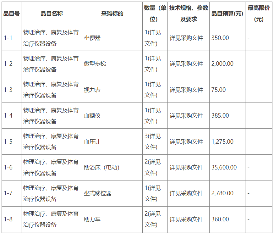 采購(gòu)需求:病房護(hù)理及醫(yī)院設(shè)備 、助殘器械等,詳見競(jìng)爭(zhēng)性談判文件