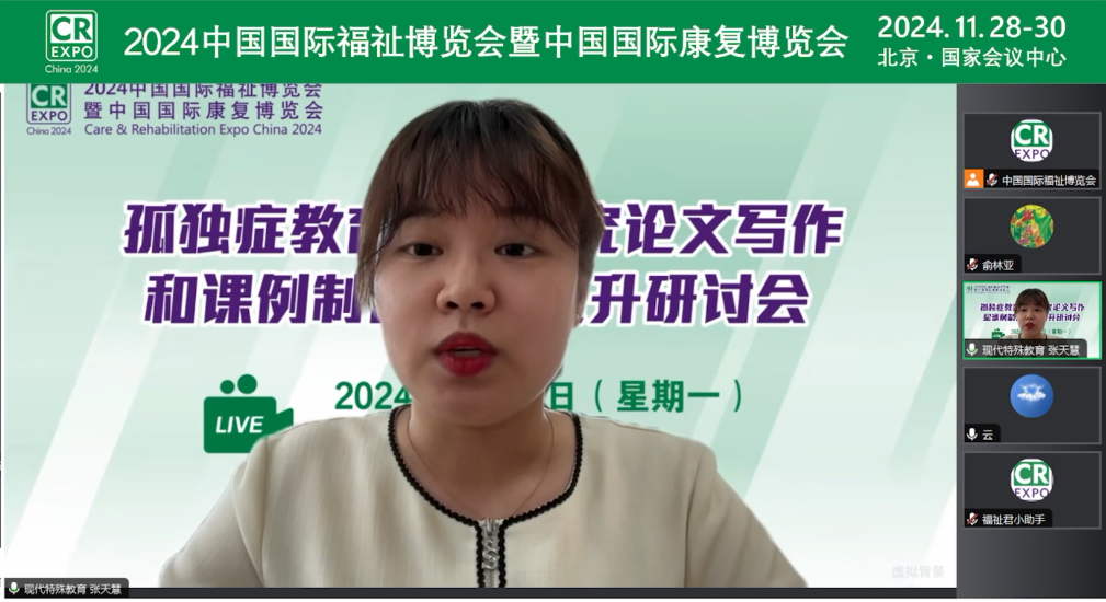 《現(xiàn)代特殊教育》編輯部編輯張?zhí)旎蹏@論文的總體介紹與寫作要求展開分析,她提到中國教育學(xué)會特殊教育分會智障教育專委會等十家單位,在2024年3月27日開啟了第一屆孤獨癥教育教學(xué)研究論文征集?,F(xiàn)代特殊教育編輯部也特設(shè)了孤獨癥教育欄目,希望通過這樣的方式集思廣益、分享經(jīng)驗,共同研究孤獨癥教育的重要課題。