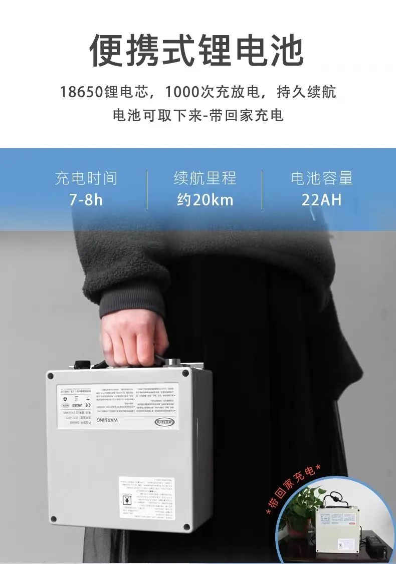 坐墊靠背采用抗菌、阻燃、防霉面料,通風(fēng)透氣。整車采用電磁自動(dòng)剎車系統(tǒng),安全可靠,放心行駛。便攜式24V12Ah鋰電池,容量大跑得遠(yuǎn),輕松拆取。只需在手機(jī)APP或者小程序上一鍵操作,就能自動(dòng)開(kāi)合折疊,方便快捷,智能安全。