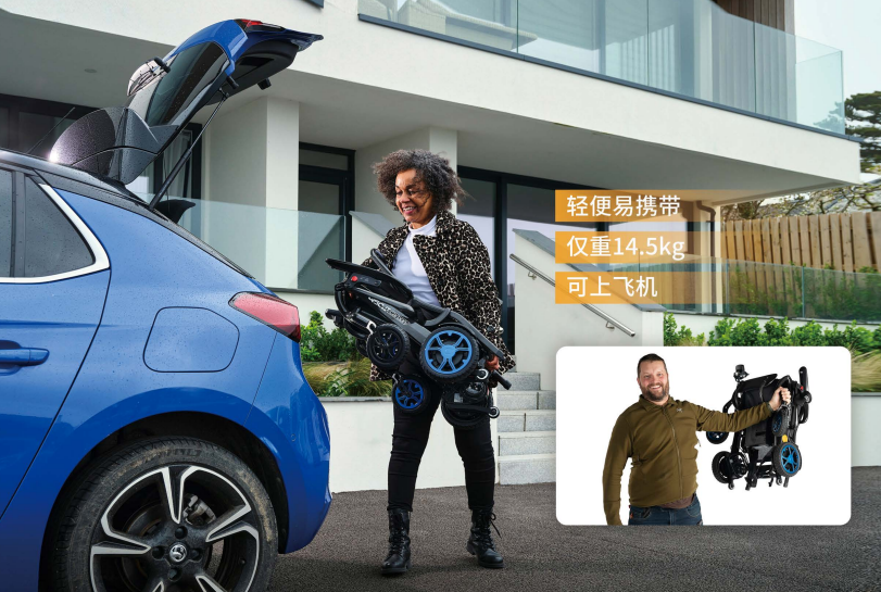 輕便短距離出游,可使用自帶電池一塊(1.4kg),續(xù)航12km。遠(yuǎn)行出游,可在電池倉(cāng)多放一塊電池,續(xù)航24km。輕便的電池僅重1.4kg,可放置在雜物袋內(nèi)備用。扶手一鍵快掀,幫助轉(zhuǎn)移位,控制器可根據(jù)使用習(xí)慣,更換左右手位置,運(yùn)輸安全帶便于折疊運(yùn)輸。