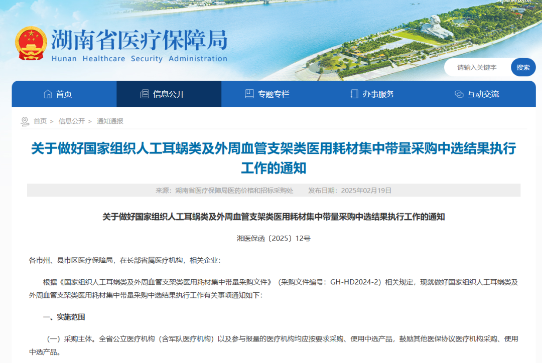 2月28日,福建醫(yī)保局發(fā)布《關(guān)于落實國家組織人工耳蝸類及外周血管支架類醫(yī)用耗材集中帶量采購有關(guān)工作的通知》,其中指出,人工耳蝸類中選結(jié)果于2025年3月7日在福建省醫(yī)療保障信息平臺藥品和醫(yī)用耗材招標和采購交易子系統(tǒng)掛網(wǎng),3月11日起正式執(zhí)行;外周血管支架類中選結(jié)果于5月12日在招采子系統(tǒng)掛網(wǎng),5月14日起正式執(zhí)行。