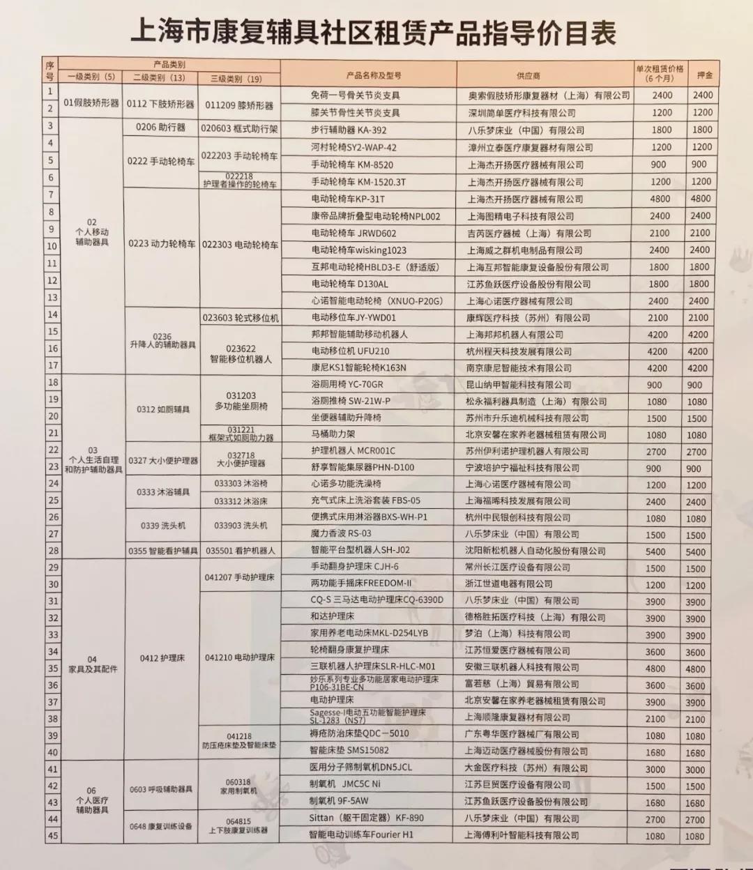 試點(diǎn)期間,每件產(chǎn)品租期均為半年,價(jià)格從900-4000多元不等,老人還需繳納一定金額的押金,租賃期結(jié)束后歸還。本市戶籍60周歲至74周歲低保、低收入老年人,75周歲(含)以上老年人可申請(qǐng)租賃服務(wù)補(bǔ)貼,補(bǔ)貼金額為租賃價(jià)格的50%,每人每年補(bǔ)貼上限為3000元。(下方價(jià)目表僅供參考,仍在實(shí)施調(diào)整中)