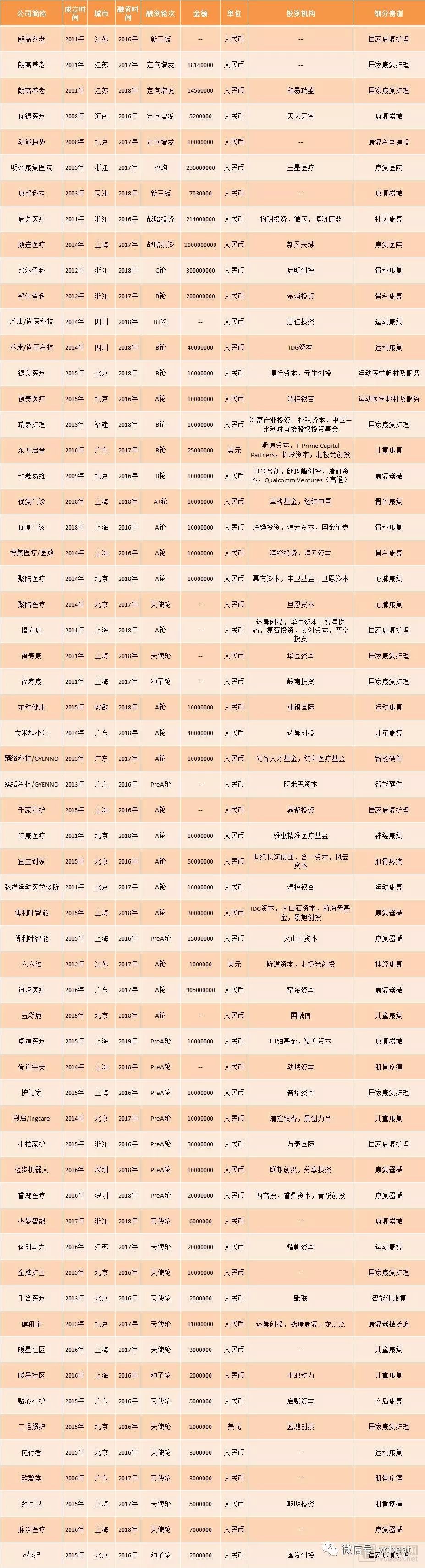 通過(guò)對(duì)數(shù)據(jù)的統(tǒng)計(jì)分析以及對(duì)康復(fù)領(lǐng)域有所涉獵的投資機(jī)構(gòu)的訪談,我們大致可以從中看出一些現(xiàn)實(shí)和趨勢(shì),供大家探討。