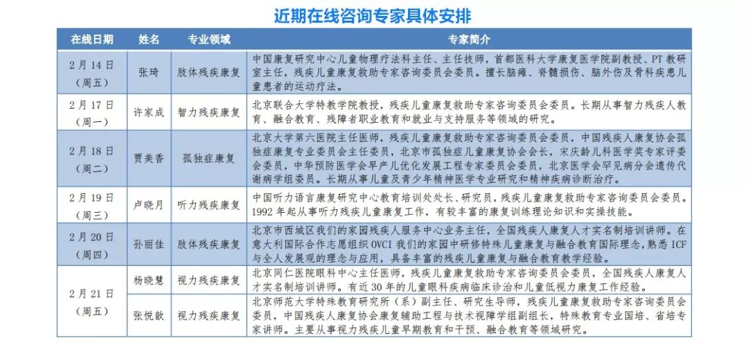 為切實(shí)做好疫情防控工作,幫助廣大殘疾兒童居家開展康復(fù)訓(xùn)練,中國殘聯(lián)將于2月14日開設(shè)“抗擊疫情 殘疾兒童康復(fù)專家在線咨詢”專欄,邀請康復(fù)領(lǐng)域具有豐富實(shí)踐經(jīng)驗(yàn)的專家在線為殘疾兒童家長提供專業(yè)解答。