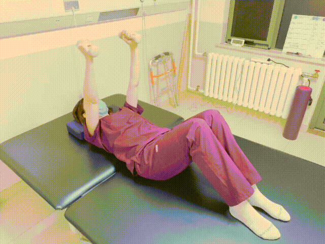 (手臂同時上舉如感到呼吸困難可換成兩側(cè)交替進行)