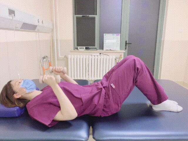 (做動作時注意腹肌發(fā)力,配合好呼吸,起來時呼氣,躺下吸氣)