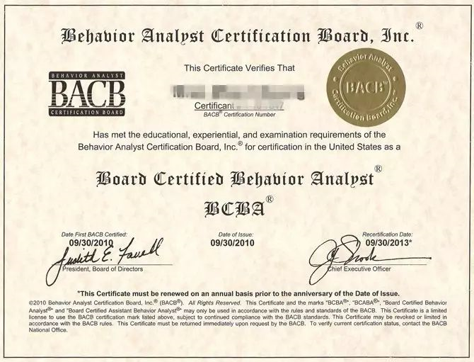 BCBA是認證行為分析師的簡稱,是從事應(yīng)用行為分析的專業(yè)人員,也是目前國際上自閉癥康復(fù)相關(guān)從業(yè)人員的資格認證。