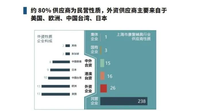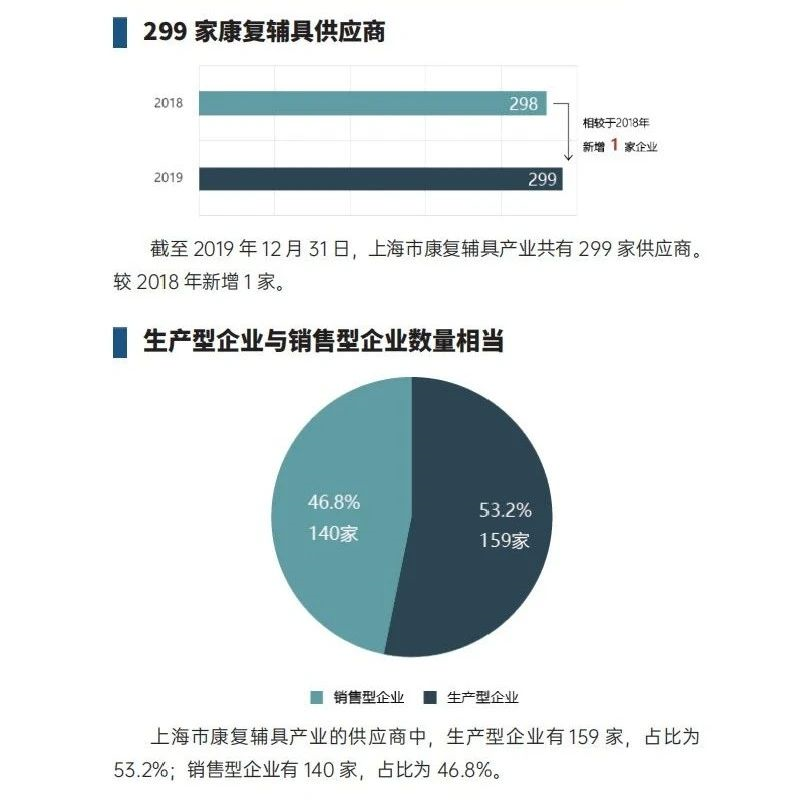 通過(guò)線下調(diào)研和線上企業(yè)信息數(shù)據(jù)庫(kù)的檢索,將上海市康復(fù)器具協(xié)會(huì)成員單位、在上海市注冊(cè)且主營(yíng)業(yè)務(wù)為康復(fù)輔具的企業(yè)、在上海市注冊(cè)且持有輔具專(zhuān)利等345家企業(yè)信息納入本次統(tǒng)計(jì)范圍,其中包括299家康復(fù)輔具供應(yīng)商和46家康復(fù)輔具服務(wù)企業(yè)。